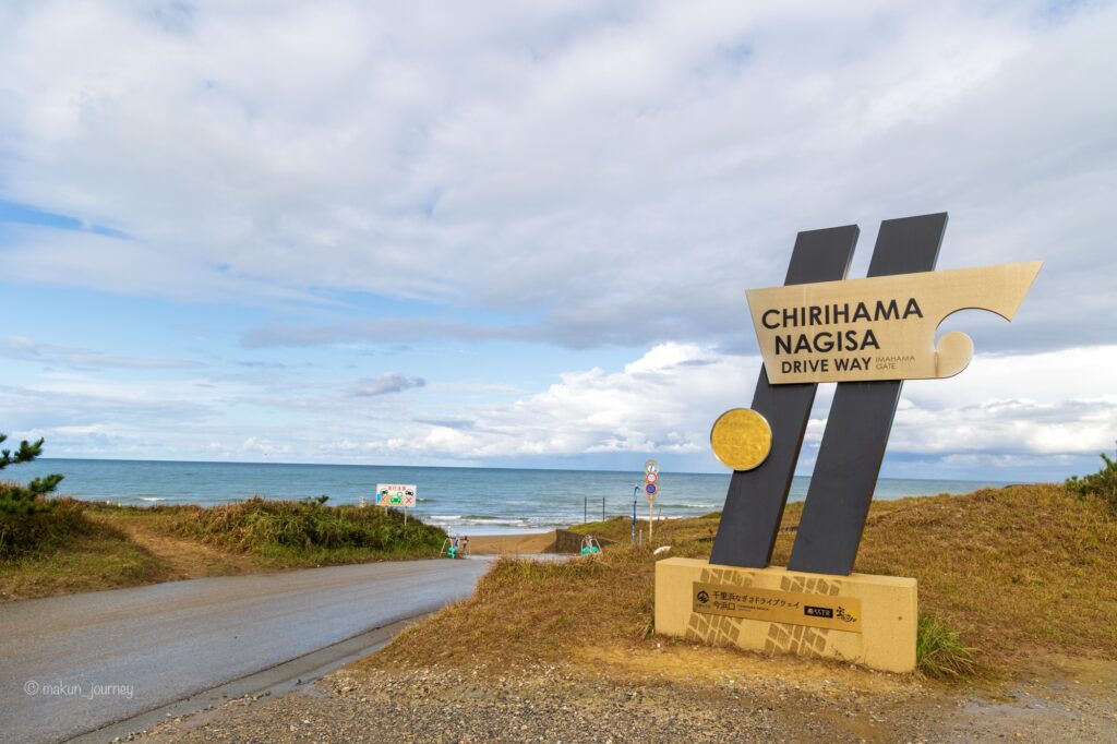 千里浜なぎさドライブウェイの入り口には、このようにモニュメントがあり、まさにここからスタート!という感じがしてテンションが上がります。