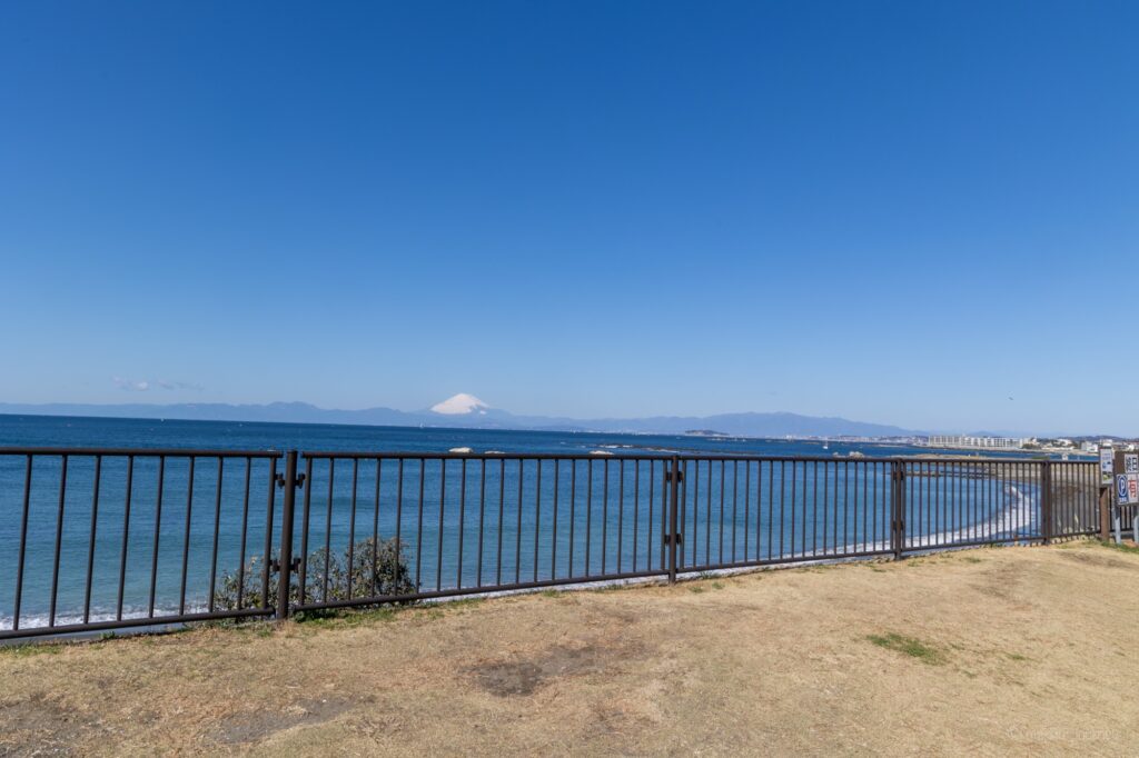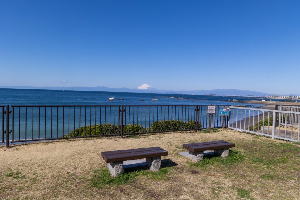 葉山公園は、相模湾に面した公園で、目の前にある相模湾の絶景はもちろん、その後ろには大きな富士山を見ることができます。