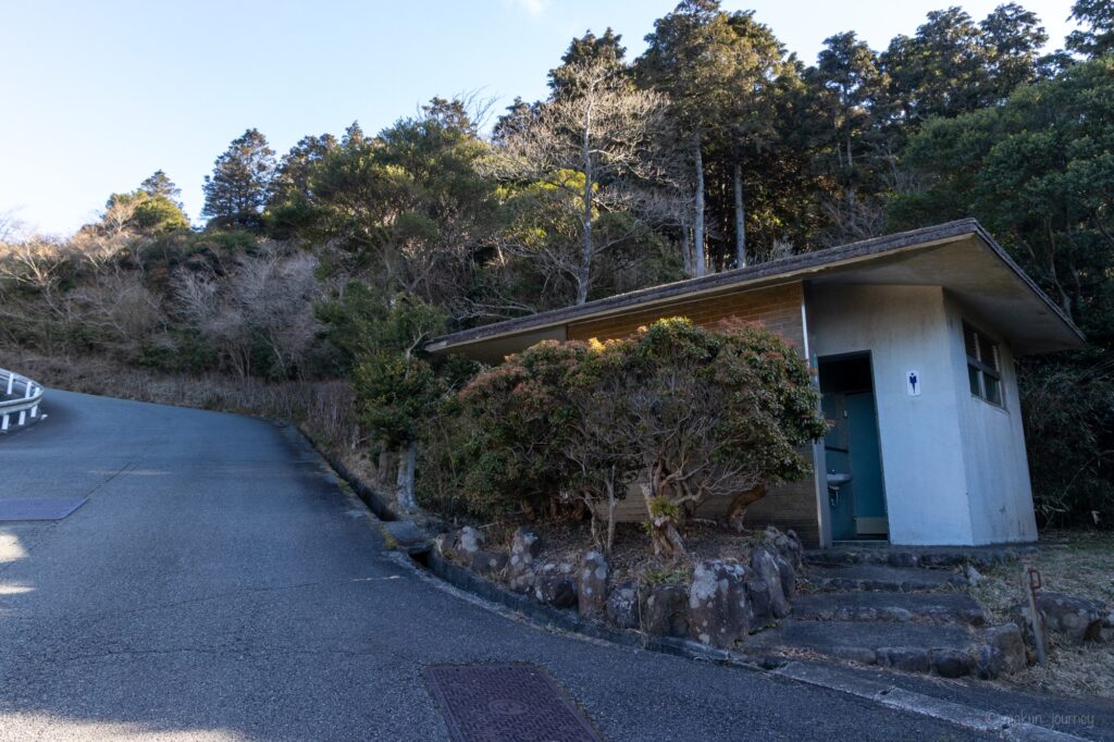 伊豆スカイラインの入り口である熱海峠インター手前で姫の沢公園の看板もしくは同じ場所にある大きな日金山霊園の看板の手前で左折し、上り坂を上がっていくと駐車場に到着します。