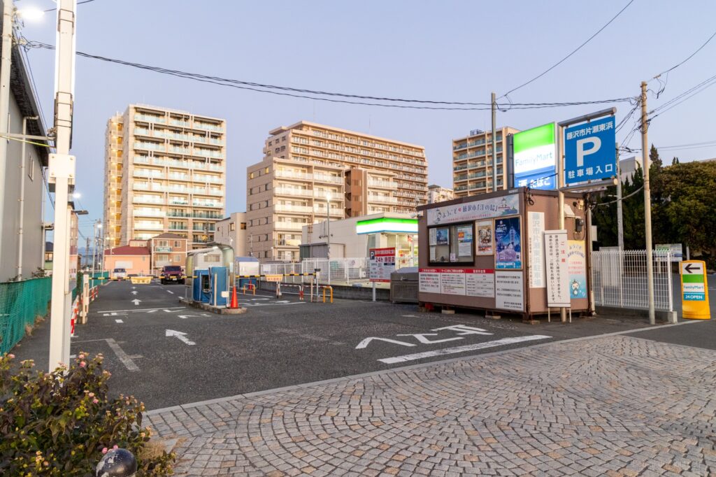 今回は片瀬東浜海水浴場のすぐそばにある「藤沢市片瀬東浜駐車場」を利用しました。