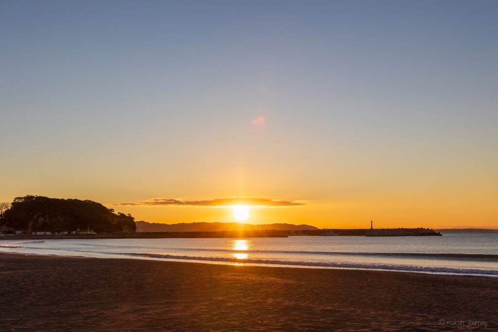 片瀬東浜海水浴場は、夏には非常に人気の海水浴場ですが、冬にも絶景の日の出を見ることができ、初日の出スポットとしても人気の場所です。
