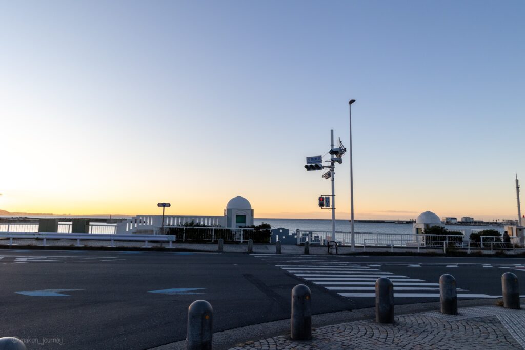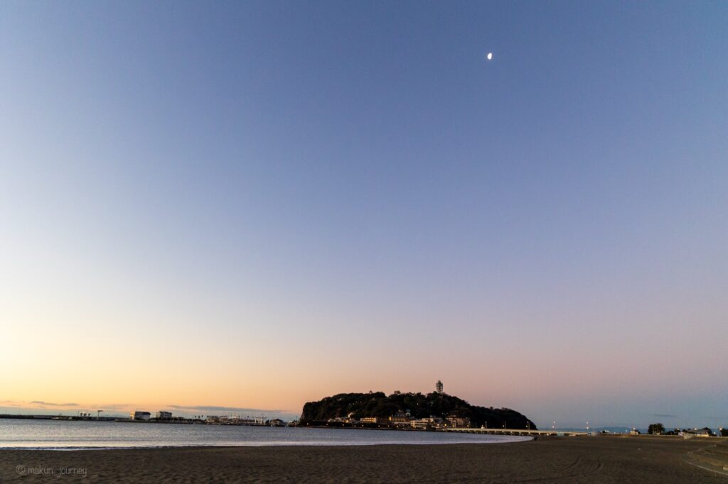 では、さっそく片瀬東浜海水浴場で絶景日の出を見るドライブ旅の様子をご紹介します。