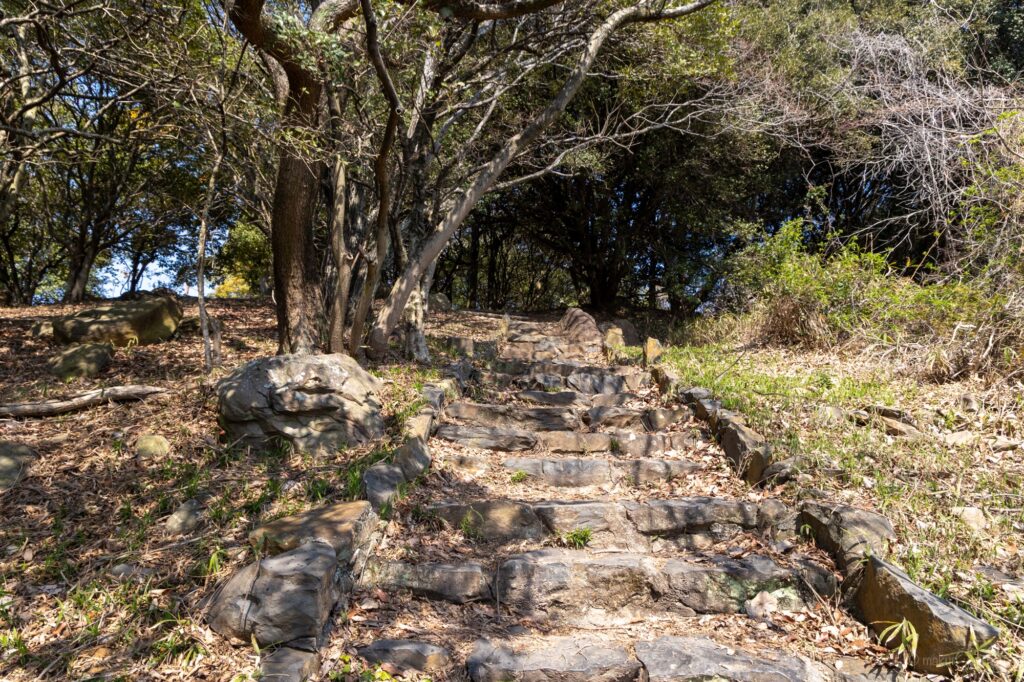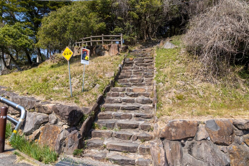 駐車した後は、駐車場からすぐの場所にある、こちらの階段から展望台へ向かいます。