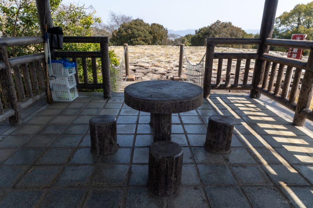 この東屋の中に入ってみると、簡単なテーブルと椅子がこのように設置されていました。