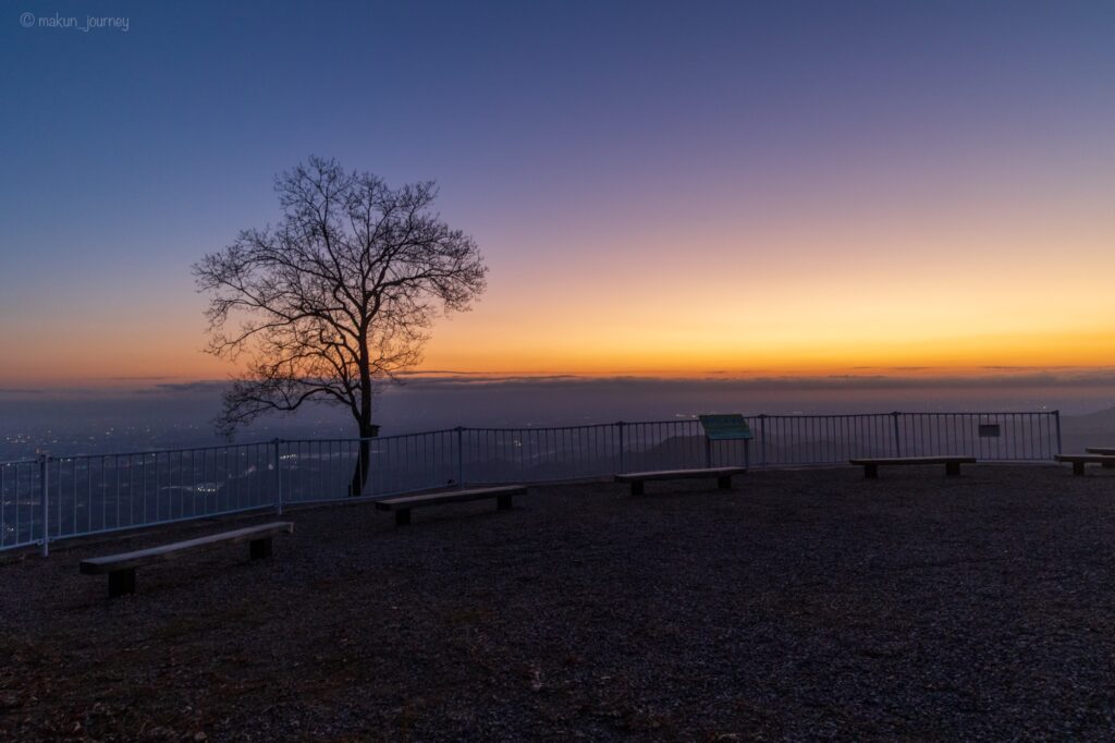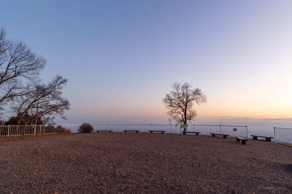 皇鈴山展望台は高台から絶景を眺めることができる展望台で、今回は日の出を見に行きましたが、息をのむ絶景とはまさにこのことだと思わせてくれる絶景を見ることができました。