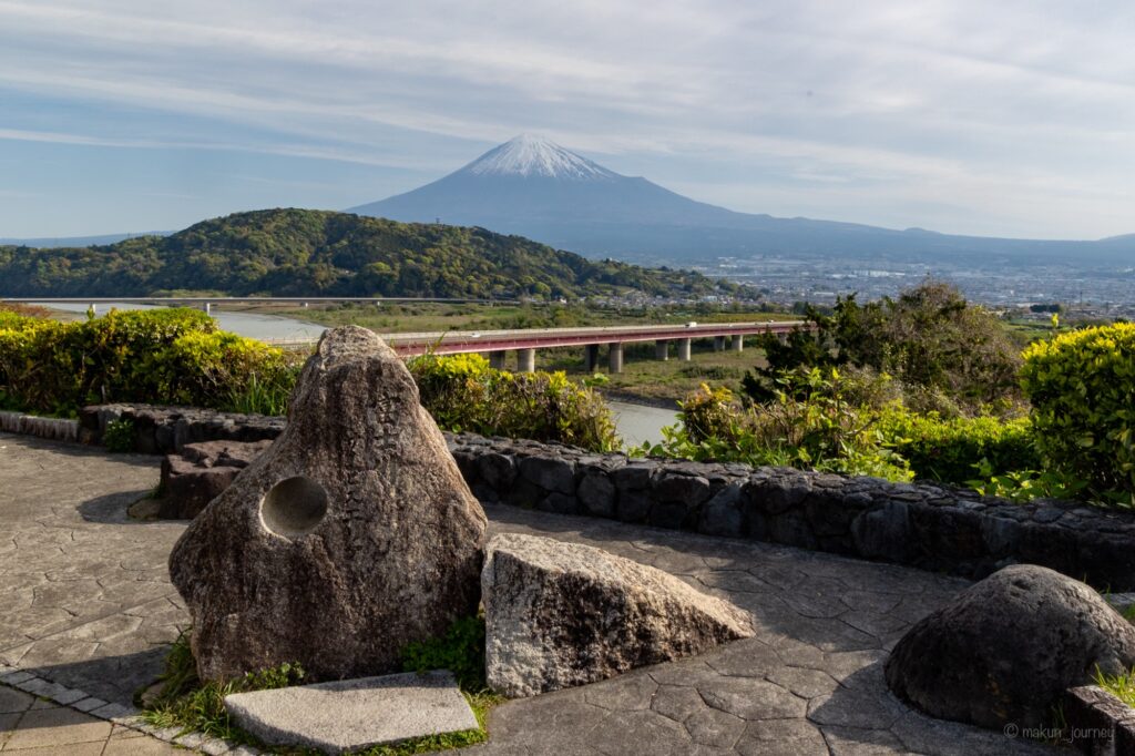 この展望台は、高台の公園のさらに高台に位置するため、緑に囲まれた静かな高台にある展望台から絶景の富士山をのんびり眺めることができました。