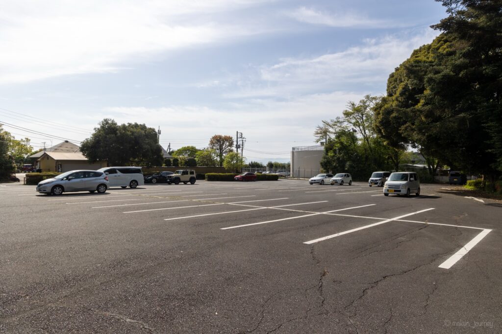 駐車場はこのようにアスファルトできちんと整備された駐車場で、無料で利用することができます。