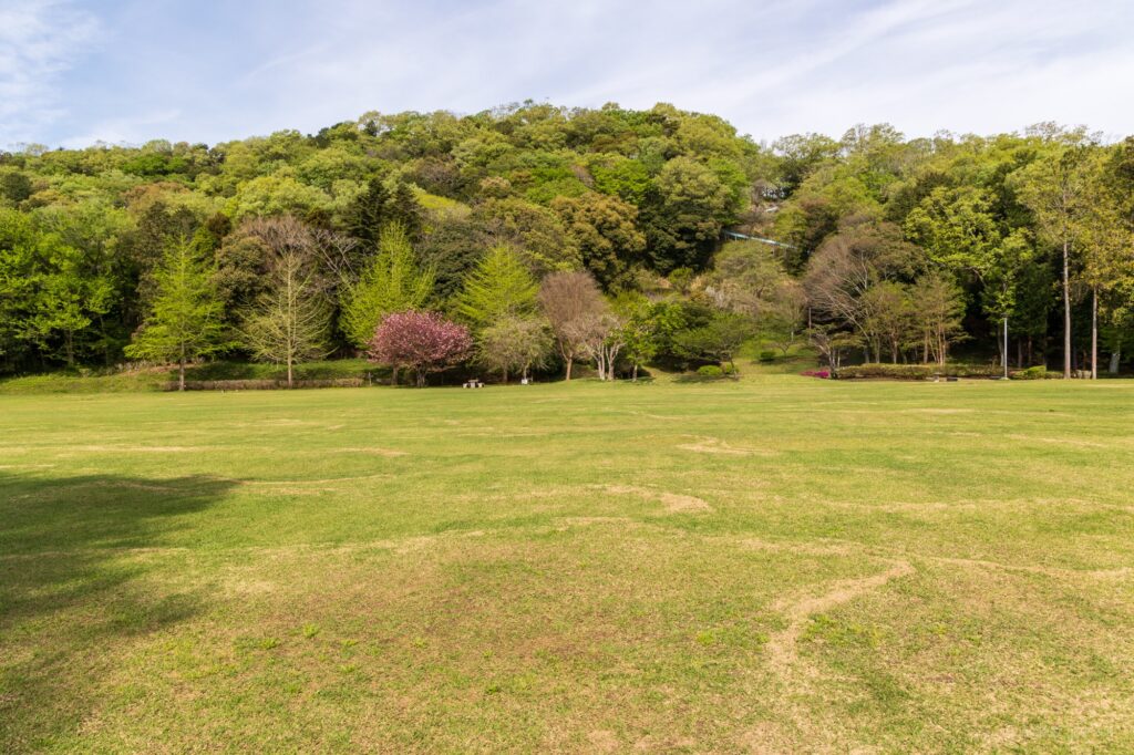 さらに芝生広場の中から芝生も入れながら撮影した一枚がこちらです。