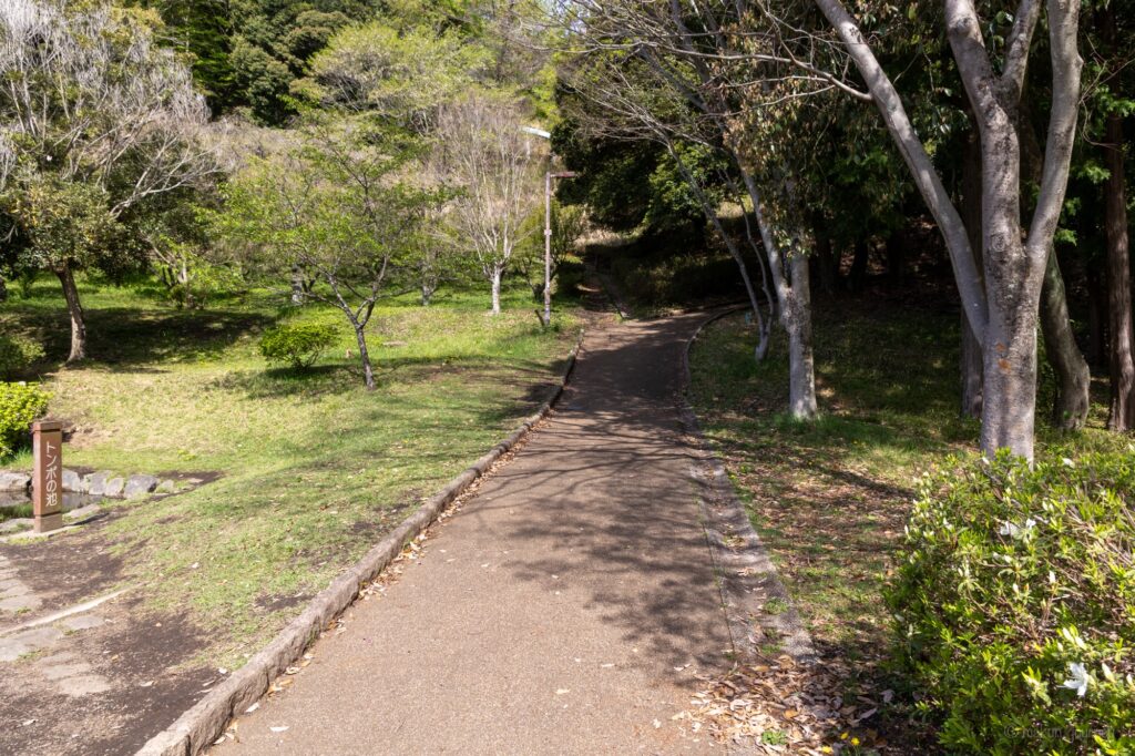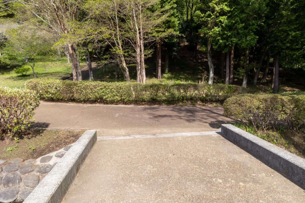駐車場からすぐ目の前にある公園の入り口から、公園に入っていきます。