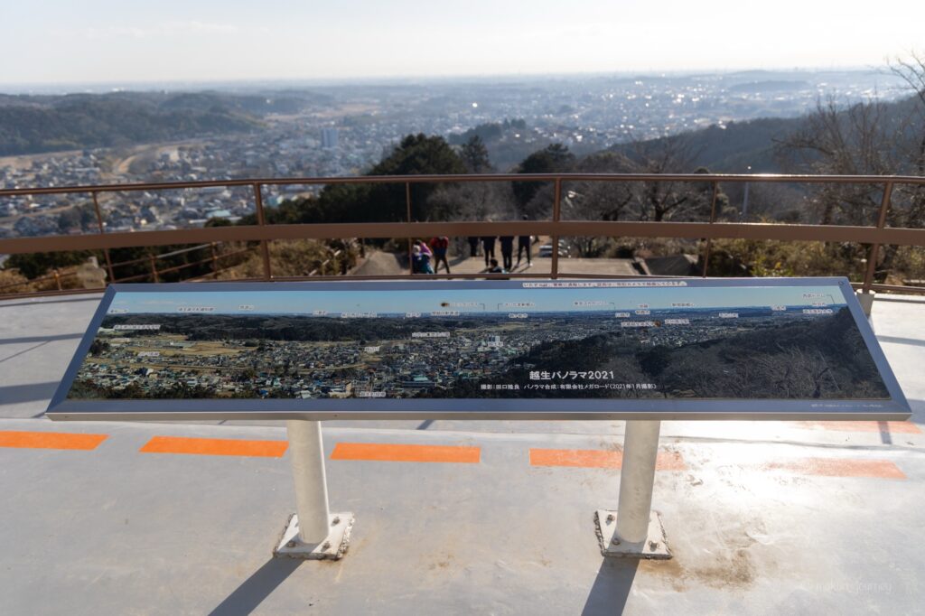 これは絶景です。展望台にはこのように、この場所からの景色の説明が看板には書かれていて、このような景色を見るときに位置関係などがわかり、ありがたい看板です。