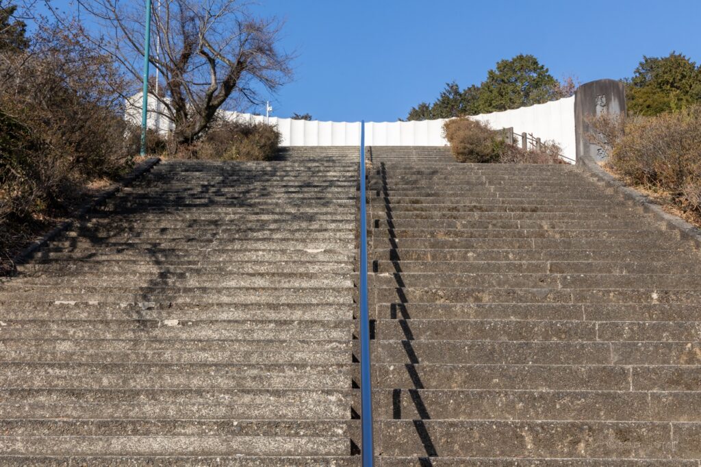 展望台へ向かう階段は、駐車場からわかりやすく正面にドーンとこのようにあります。