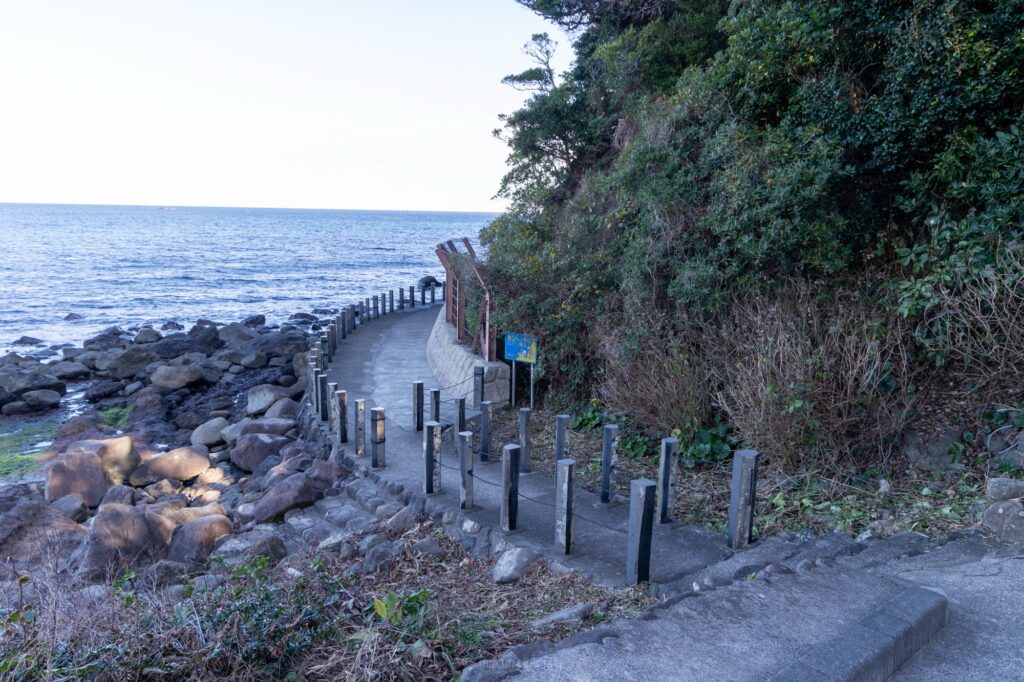 こちらの展望地は、海上にあるため結構急な坂道を下っていくこととなります。