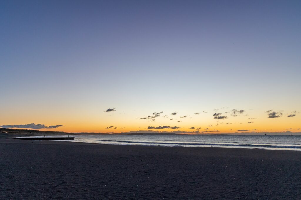そうしてすぐに辿り着いた、サザンビーチモニュメントと撮影した日の出がこちらです。