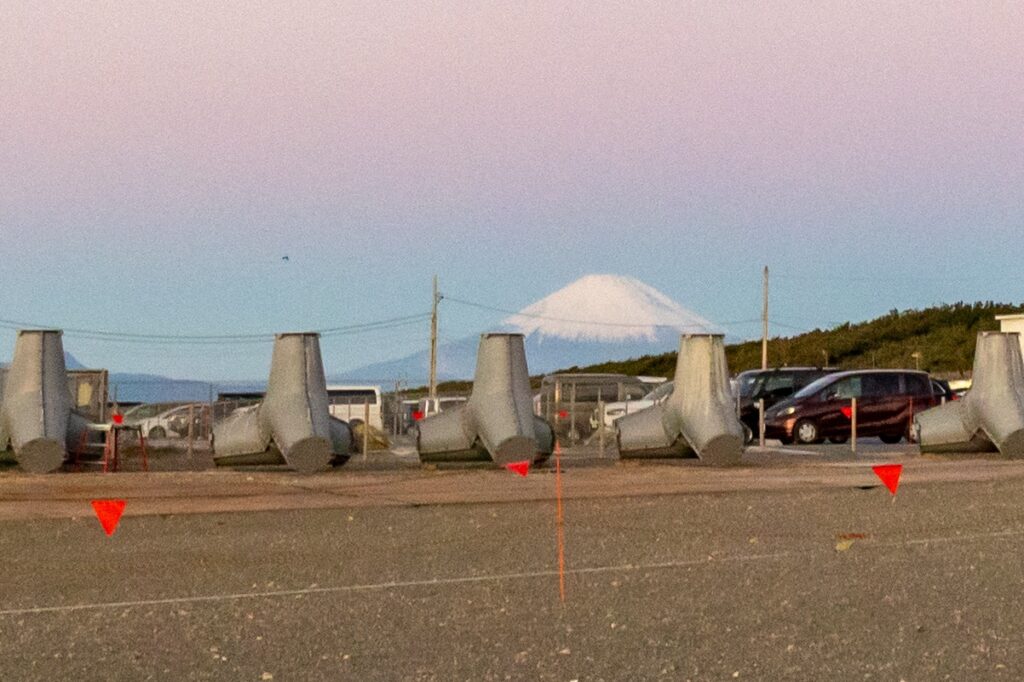画質が粗いが、サザンビーチからは富士山を見ることができる。