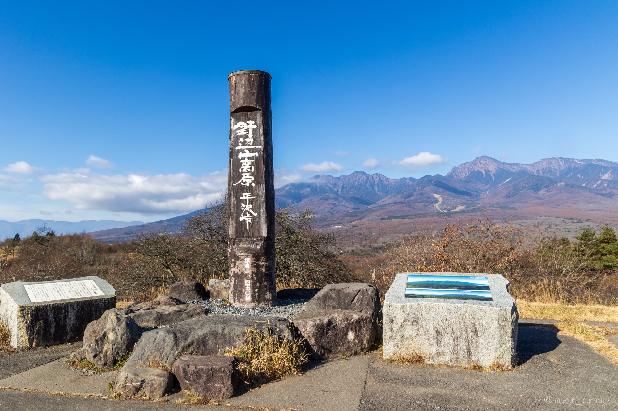 ドライブ中に八ヶ岳連峰を駐車場から一望できるスポットがこの平沢峠。目の前が抜けていて雄大な八ヶ岳連峰をのんびり眺めることのできるこの場所は、おすすめの絶景ドライブスポットであった。 -