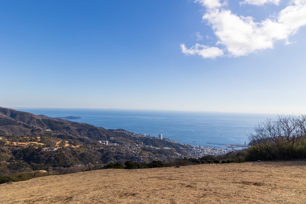 さらに、富士山とは反対側にはこのような相模湾と熱海市街の眺望が広がります。