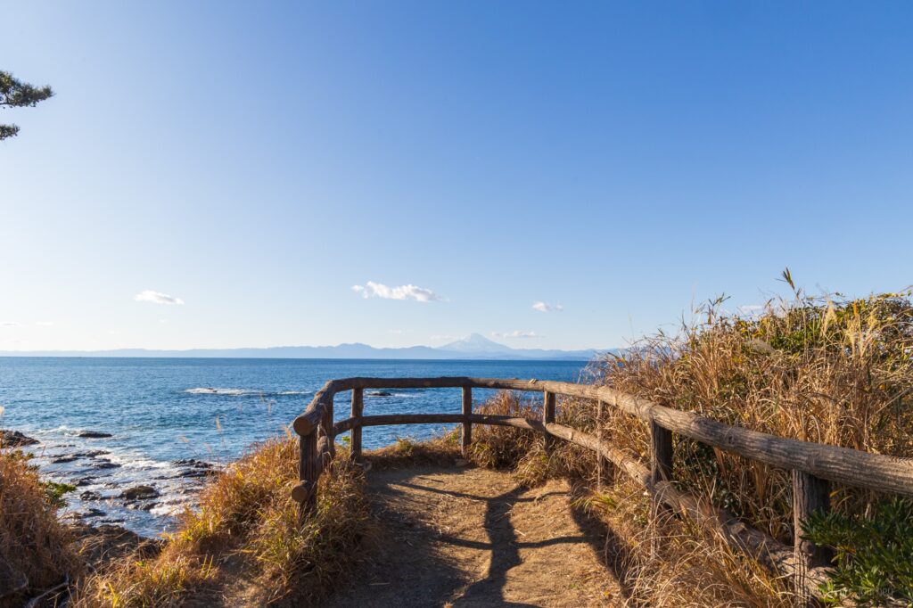 目の前に広がる相模湾と、相模湾の先に見える富士山はこの公園からの絶景ポイントであり、日中でも素晴らしい景色を見ることができますが、よりおすすめなのが、ここから見る夕日です。